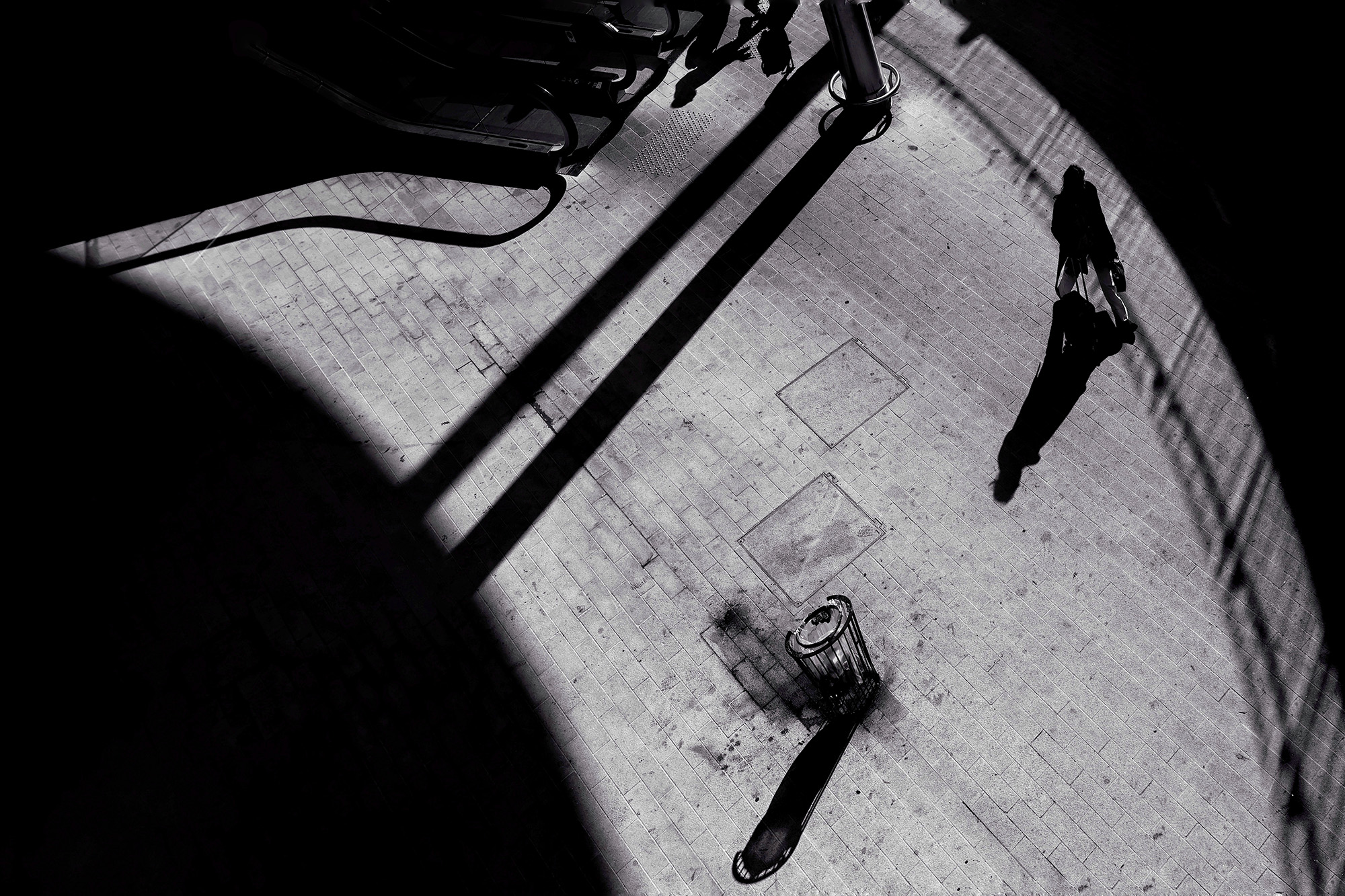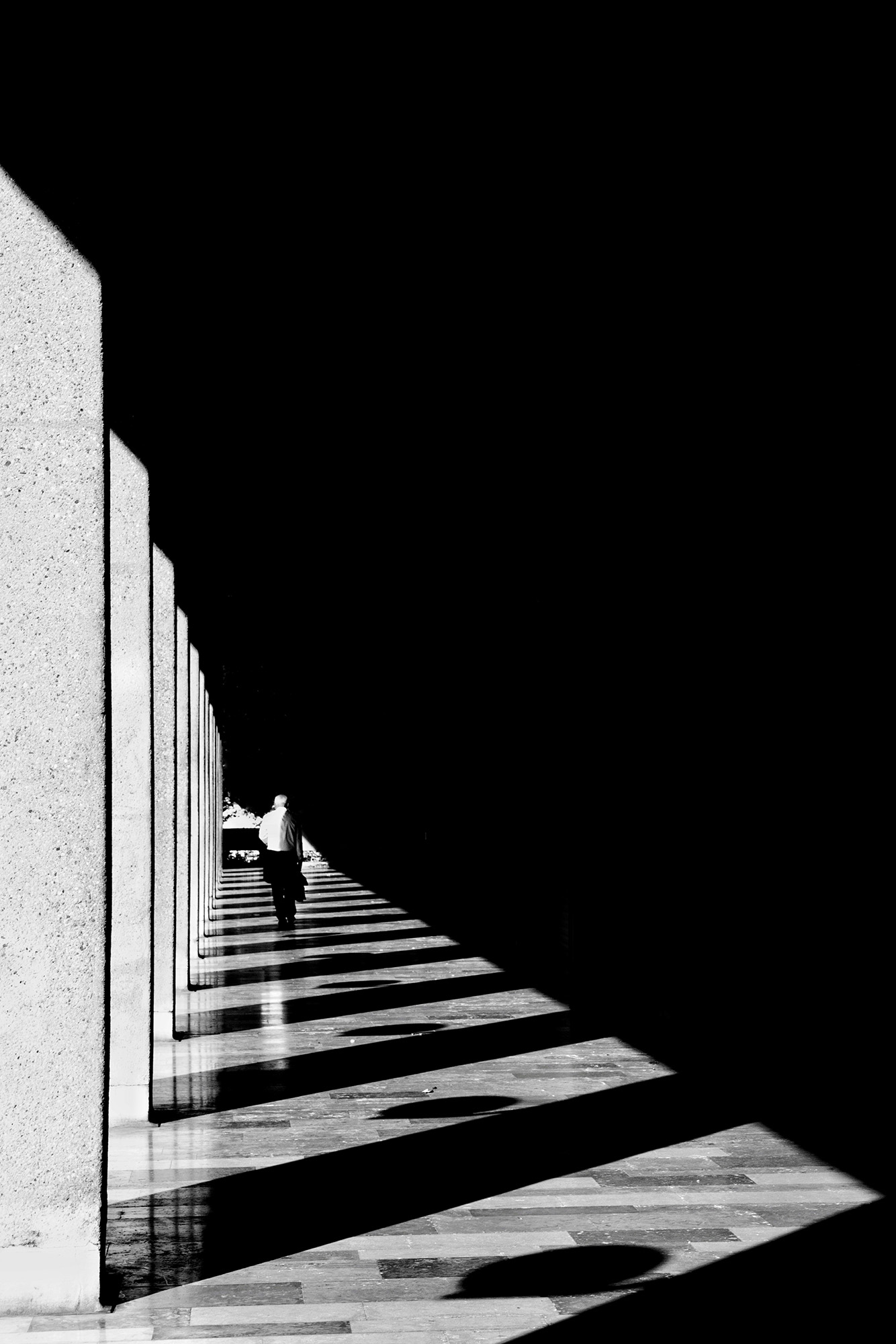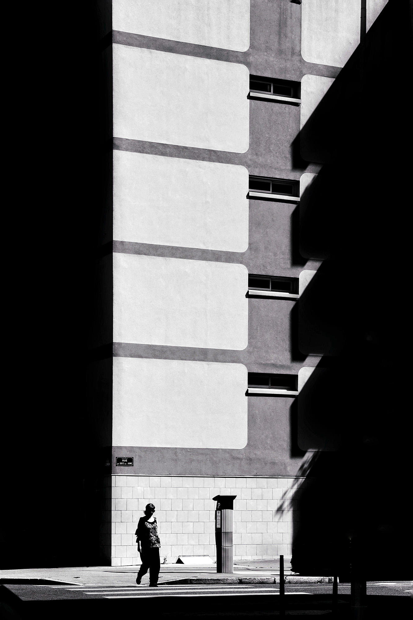 Dans La rue des-involtes, la ville apparaît comme un organisme en tension douce, une géométrie mouvante où les lignes se frôlent, se répondent et s’ouvrent parfois comme des passages inattendus. Il ne s’agit pas d’illustrer un récit, mais de mettre en lumière ce qui échappe au regard pressé : ces instants éphémères où le quotidien se suspend pour créer une scènographie authentique. L’espace urbain devient un terrain d’exploration silencieuse : chaque ombre semble dessinée, chaque forme sculptée. Le noir et blanc agit comme un langage qui ramène la ville à ses signes essentiels : surfaces, angles, géométries. Les façades, les parois et les silhouettes isolées composent un ensemble où se déploie une sensibilité attentive aux rythmes et aux matières.
