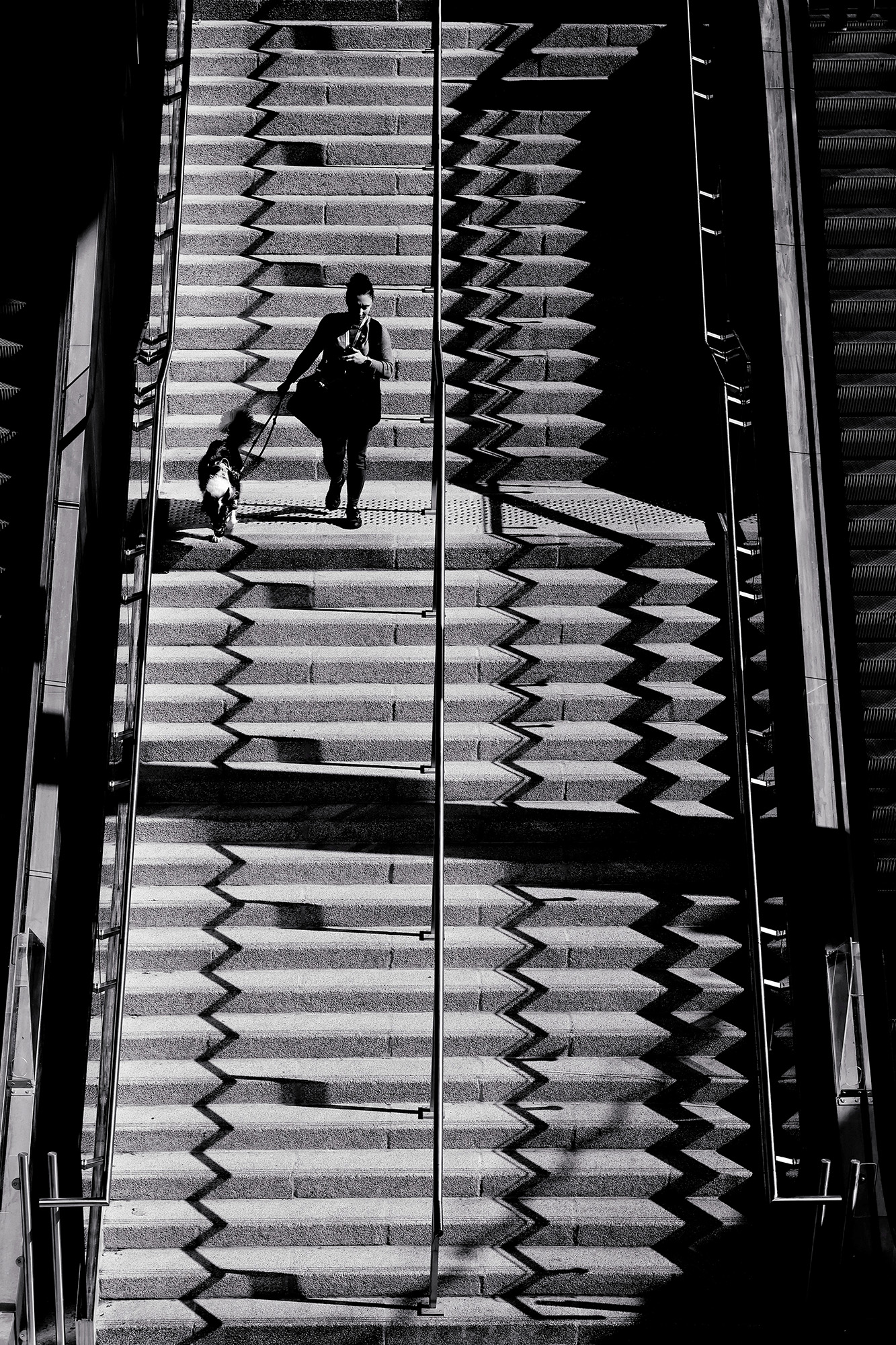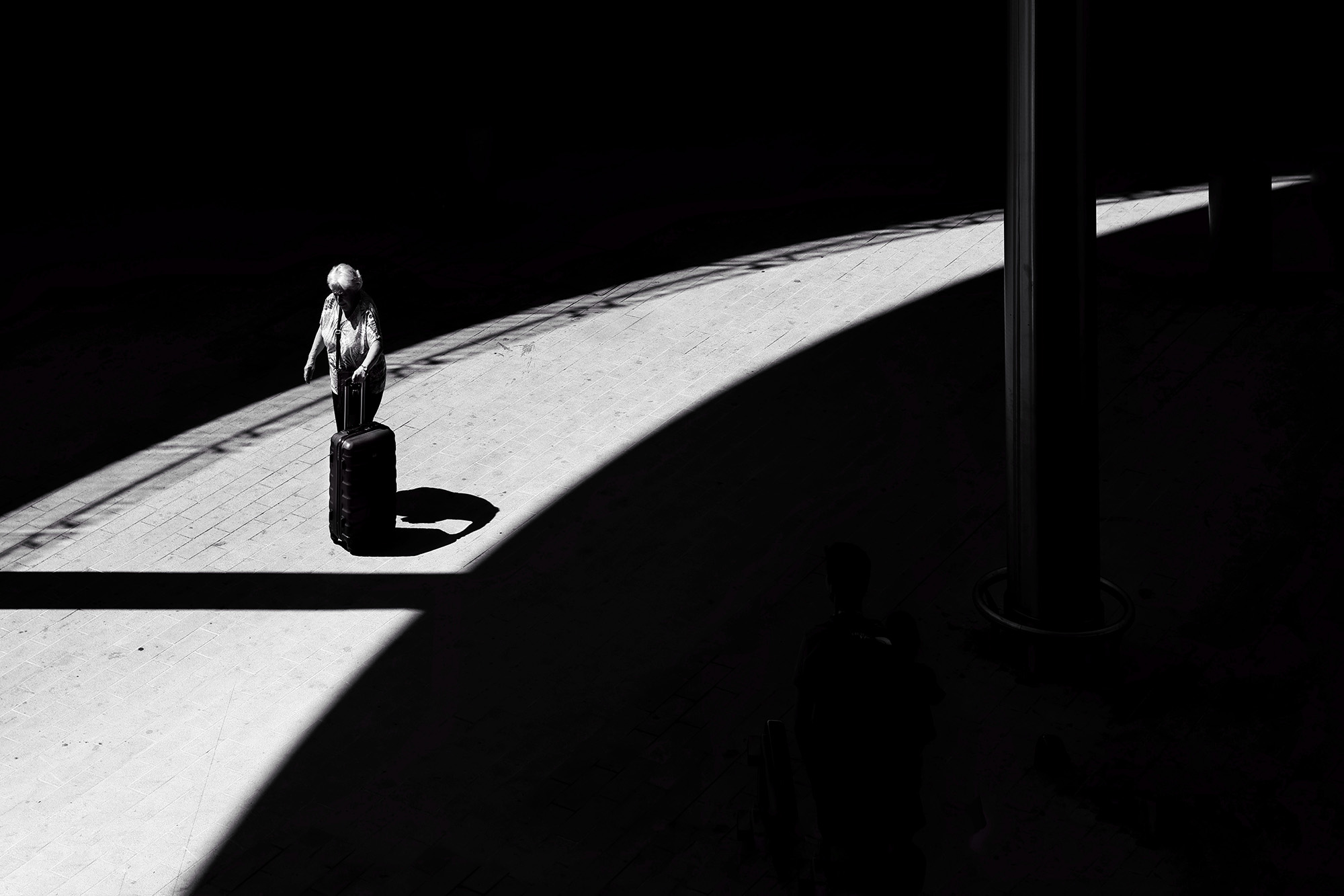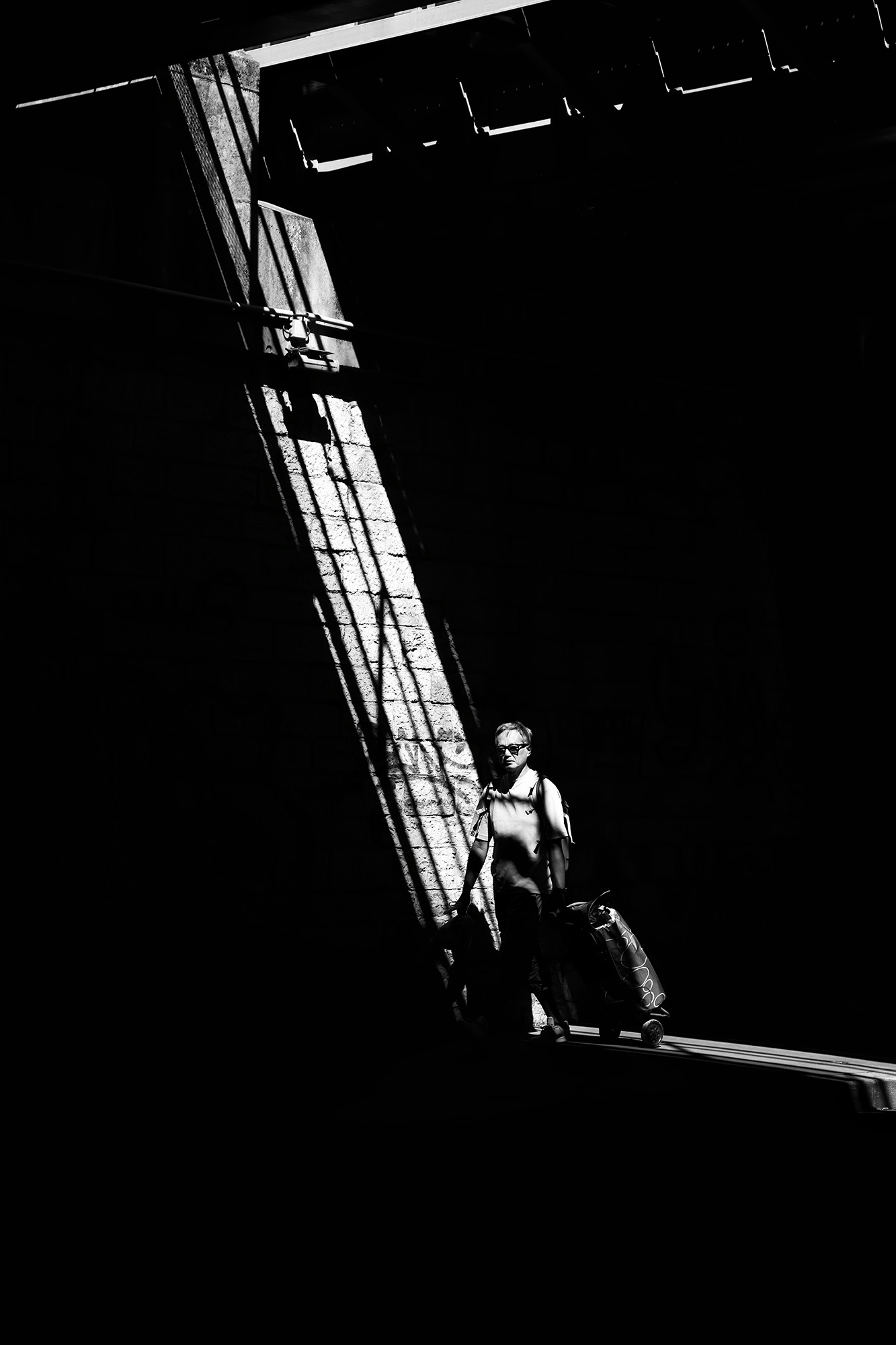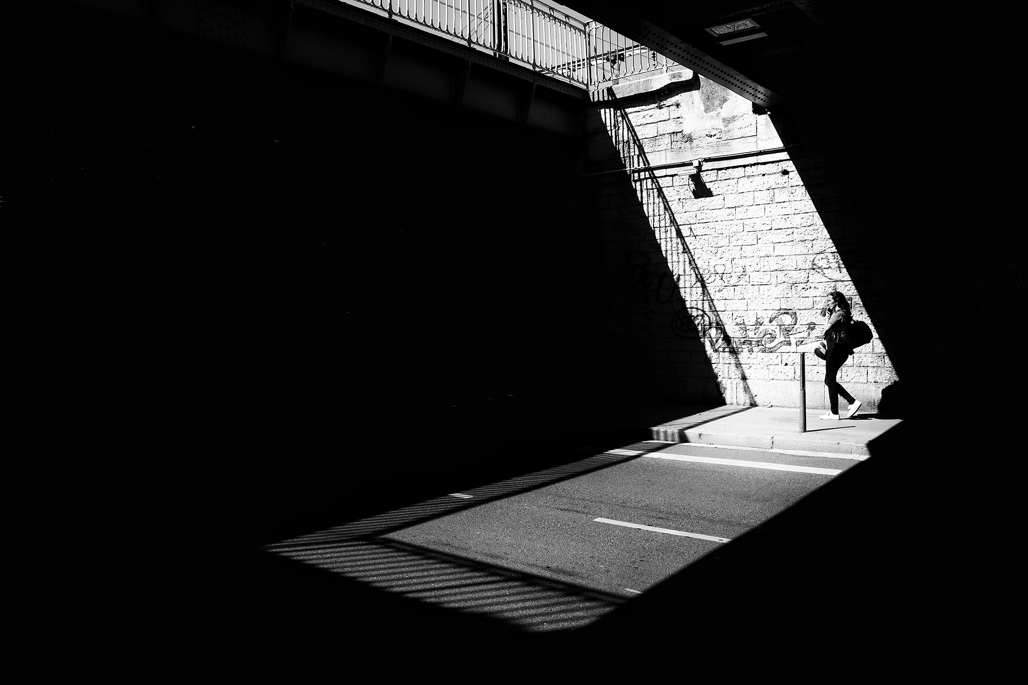 Dans La rue des-involtes, la ville apparaît comme un organisme en tension douce, une géométrie mouvante où les lignes se frôlent, se répondent et s’ouvrent parfois comme des passages inattendus. Il ne s’agit pas d’illustrer un récit, mais de mettre en lumière ce qui échappe au regard pressé : ces instants éphémères où le quotidien se suspend pour créer une scènographie authentique. L’espace urbain devient un terrain d’exploration silencieuse : chaque ombre semble dessinée, chaque forme sculptée. Le noir et blanc agit comme un langage qui ramène la ville à ses signes essentiels : surfaces, angles, géométries. Les façades, les parois et les silhouettes isolées composent un ensemble où se déploie une sensibilité attentive aux rythmes et aux matières.